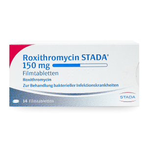 Roxithromycin STADA® ist ein Antibiotikum aus der Gruppe der Makrolide zur Bekämpfung bestimmter Infektionen. Es ist als Filmtabletten in zwei Wirkstärken erhältlich: 150 mg und 300 mg.