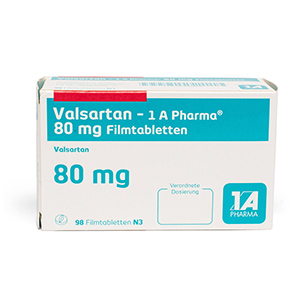Valsartan von 1 A Pharma ist seit Oktober 2010 auf dem deutschen Markt erhältlich. Das Präparat enthält den Wirkstoff Valsartan aus der Gruppe der Sartane. Diese Medikamentengruppe blockiert Angiotensin II-Rezeptoren. Valsartan hebt so die gefäßverengenden Wirkung von Angiotensin II auf. Zusätzlich setzt es die Ausschüttung von Aldosteron aus dem Nebennierenmark herab. Zusammen wirken die Mechanismen deutlich senkend auf den Blutdruck.